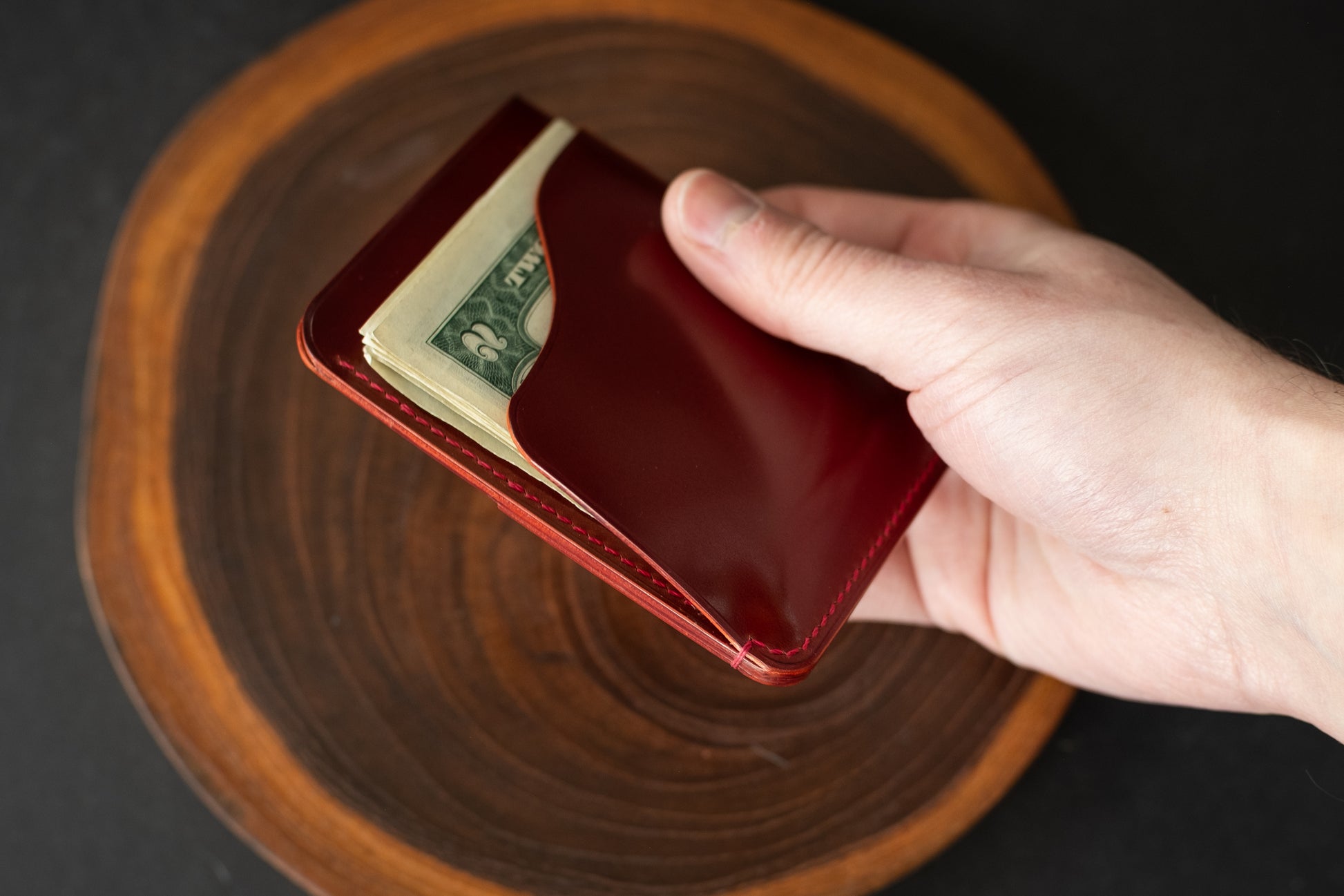 This particular wallet makes use of beautifully deep Shinki shell cordovan.