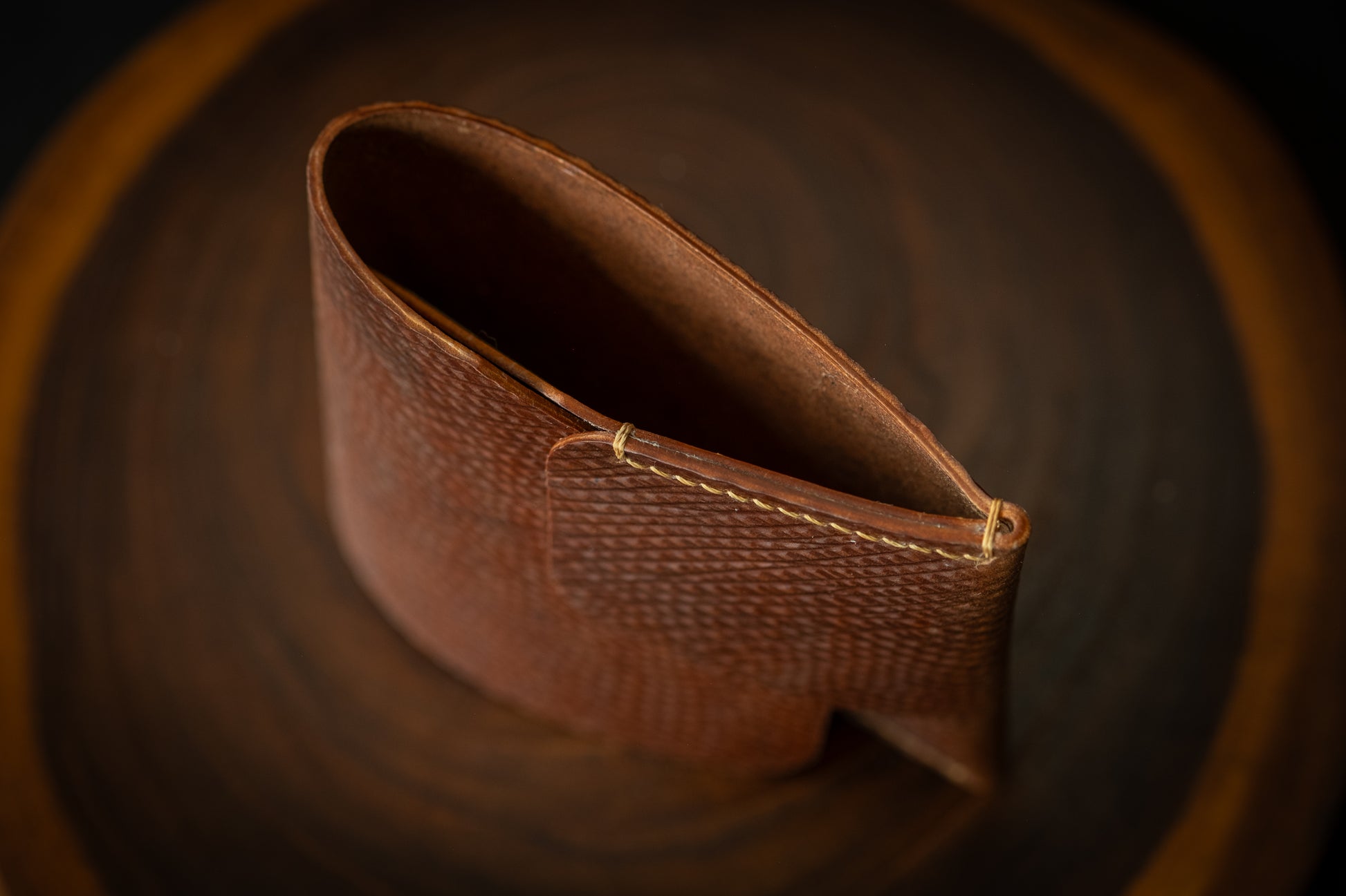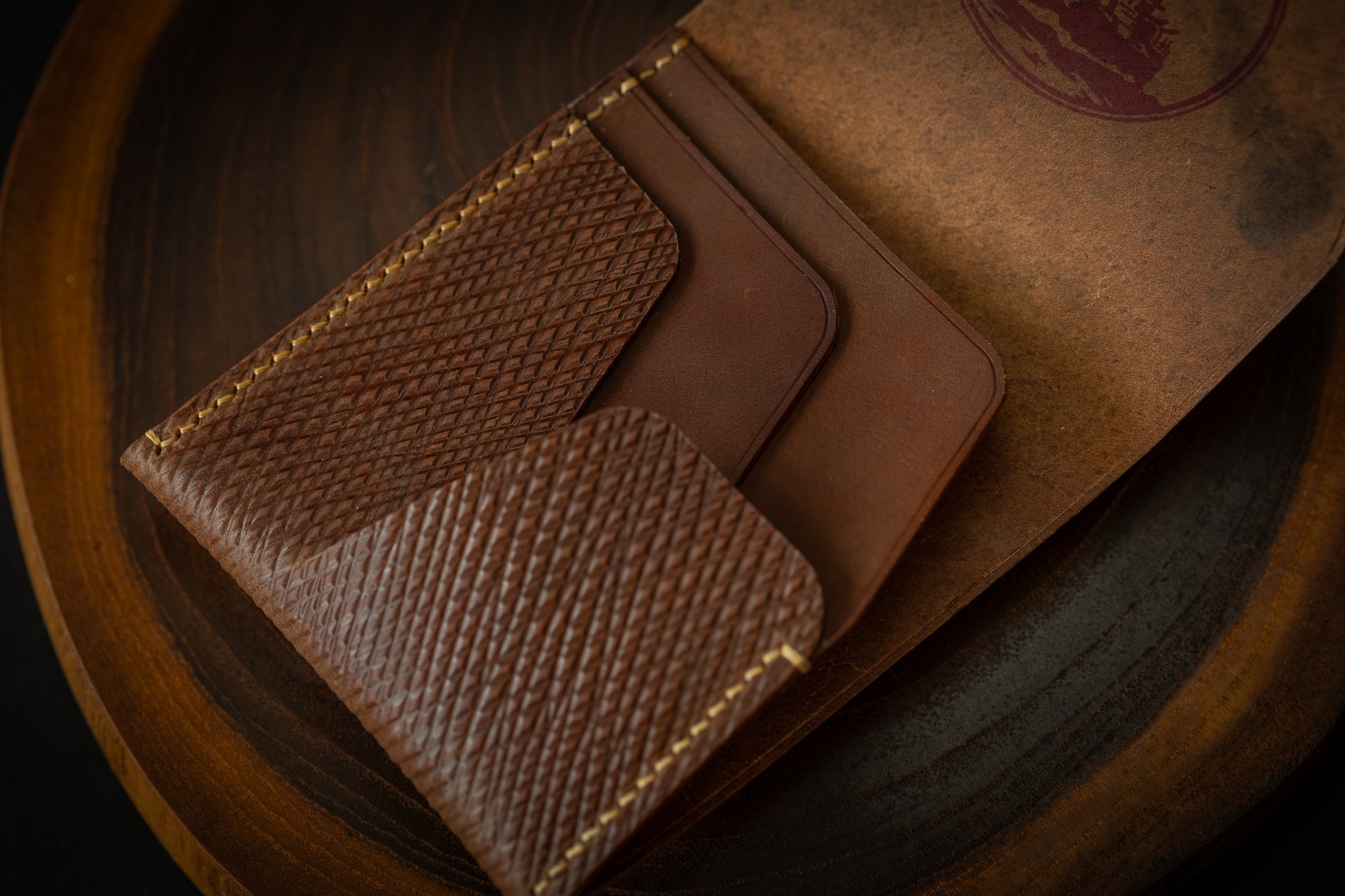 This wallet makes use of Cordovan Co.'s excellent reproduction Metta Catharina and Yuft tannages. Each replicates a traditional Russian pine tar tanning method that produces an intense and unique smoky aroma. No other leather smells like these do. The scent is not unpleasant but it is strong, so be aware of this when ordering!