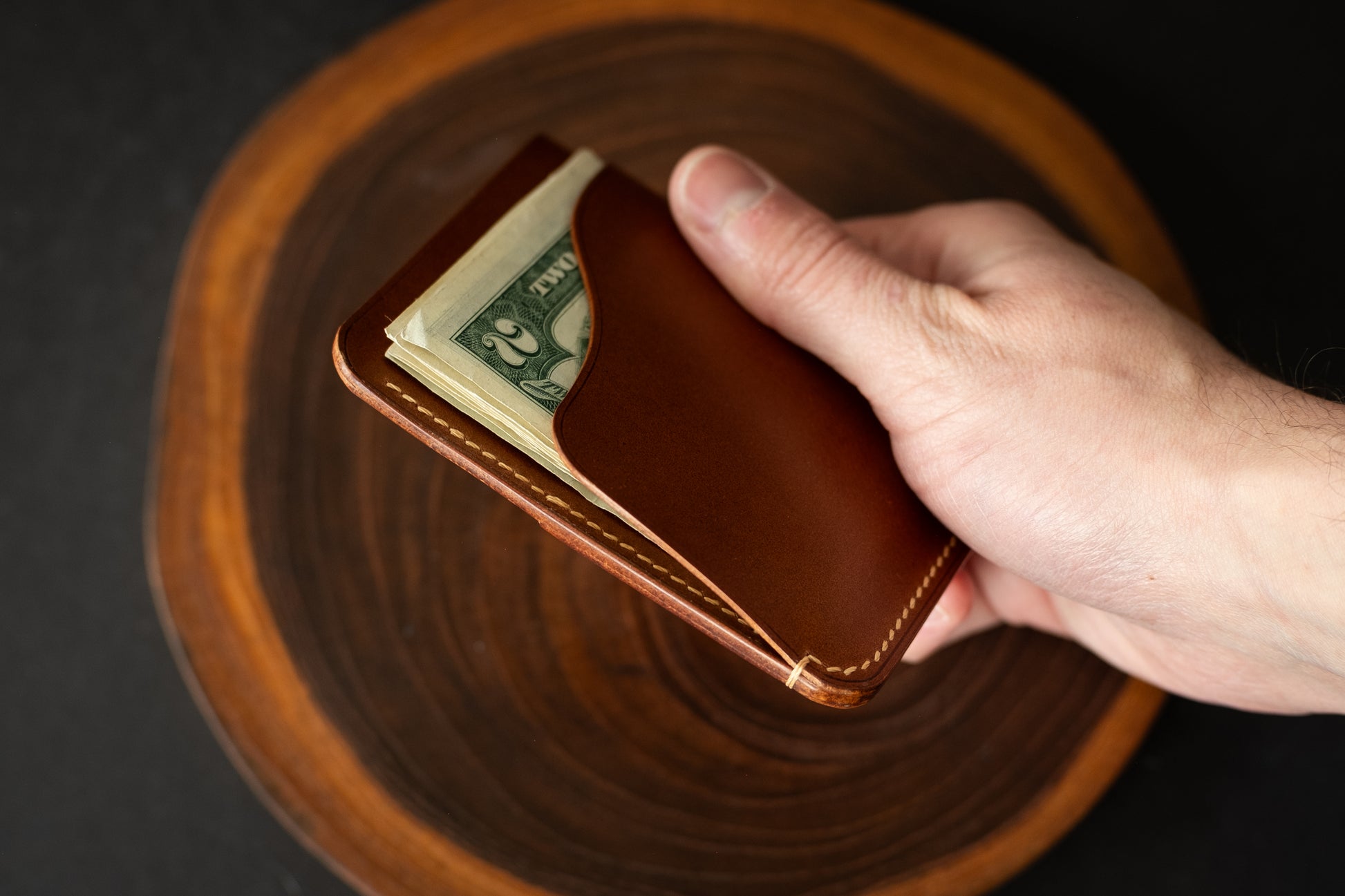 This particular wallet features the simple beauty of Whiskey brown Italian Buttero. It needs no further embellishment.